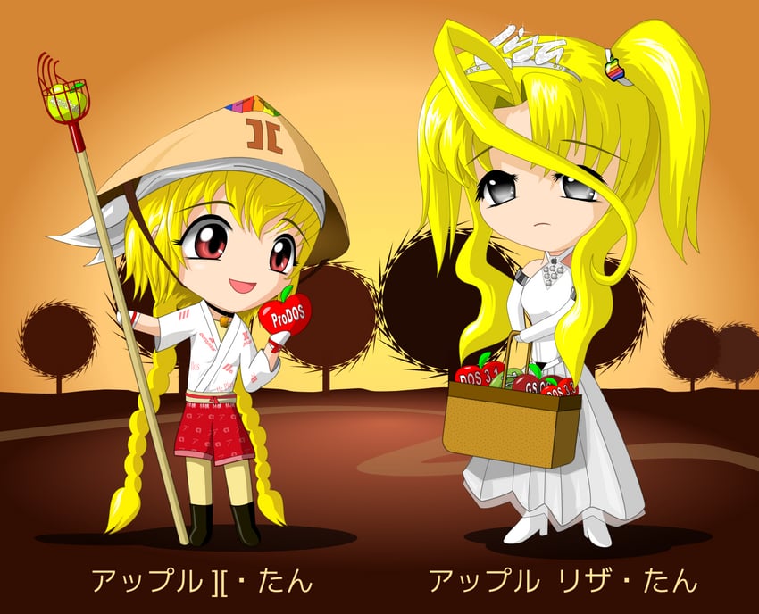 apple lisa-tan and apple ii-tan (apple inc.) drawn by c-chan