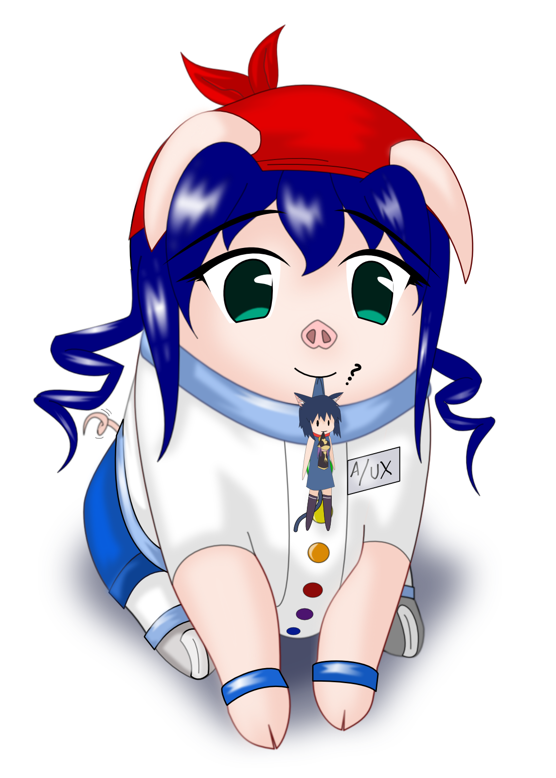 Having forgotten to post this in the last update, this is a repost of the drawing C-chan made for Kattlanna in her 2008 birthday. It was a quickly drawn parody of another picture featuring a Windows 2000-tan catgirl capturing a miniature chibi Linux-tan chew toy. Using one of Kattlanna's characters to turn the tables, this drawing features an even LARGER A/UX-tan piggirl catching the aforementioned 2K-tan (who's still too confused by the strange turn of events to let go of her Linux prey).