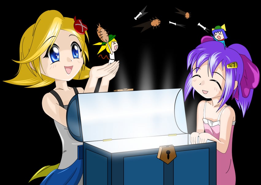 This is a reissue of C-chan's logo for the OS-tan Collections Wiki, featuring Mac OSX Server-tan (aka, "Rhapsody") and Windows NT-tan, as well as their two immediate daughters Darwin-tan and Inu-T (aka, Windows NT 4.0-tan). Aside from the enlarged size and the removal of the "OS-tan Collections Wiki" logo (so you can insert whatever you'd like in the treasure box), the image is left completely in its original entirety.